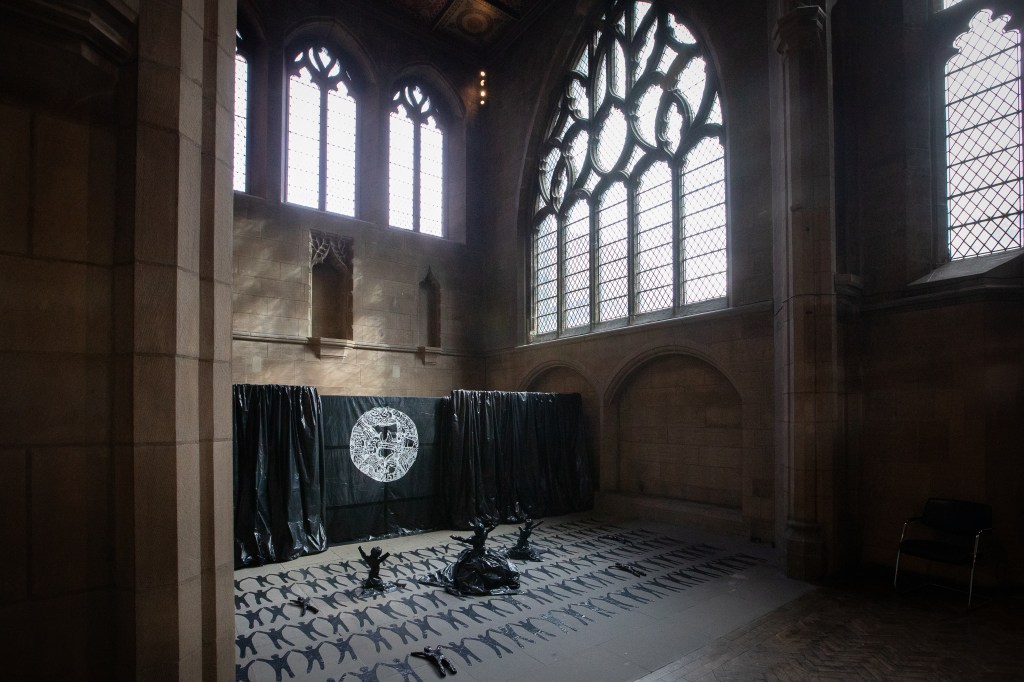 As an artist and researcher, I explore femicide in Mexico. In this work, I examined the use of plastic bags and duct tape as forensic materials, linking them to the mutilated Aztec moon goddess, Coyolxauhqui, and the Mexican puppetry tradition to disseminate ideas of truth and justice during the Mexican Revolution. The result was the installation of the Ceremonial Ritual at the Old St. George’s Chapel.